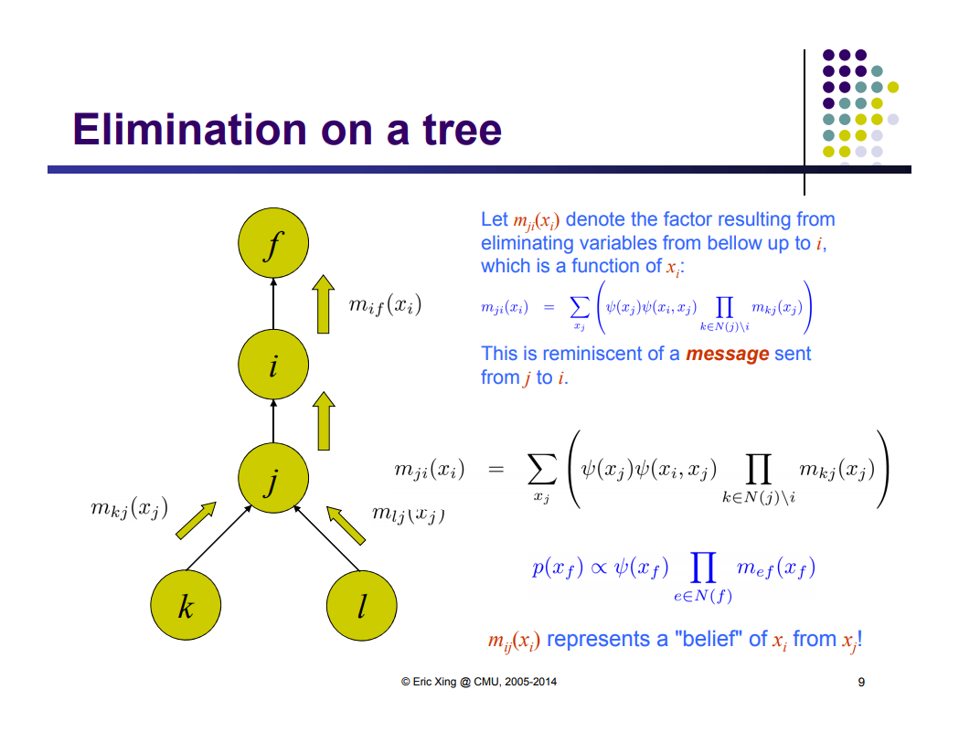将从i开始的变量消除记作$m_{ji}(x_i)$,并且是$x_i$的函数。