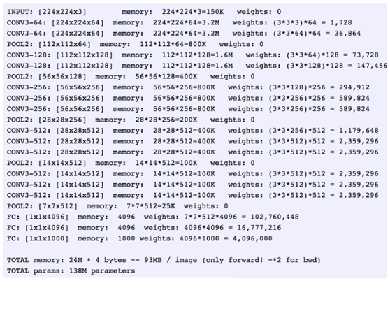 - 输入224x224x3的图片,经过64个3x3的卷积核做两次卷积+ReLU,变成224x224x64。