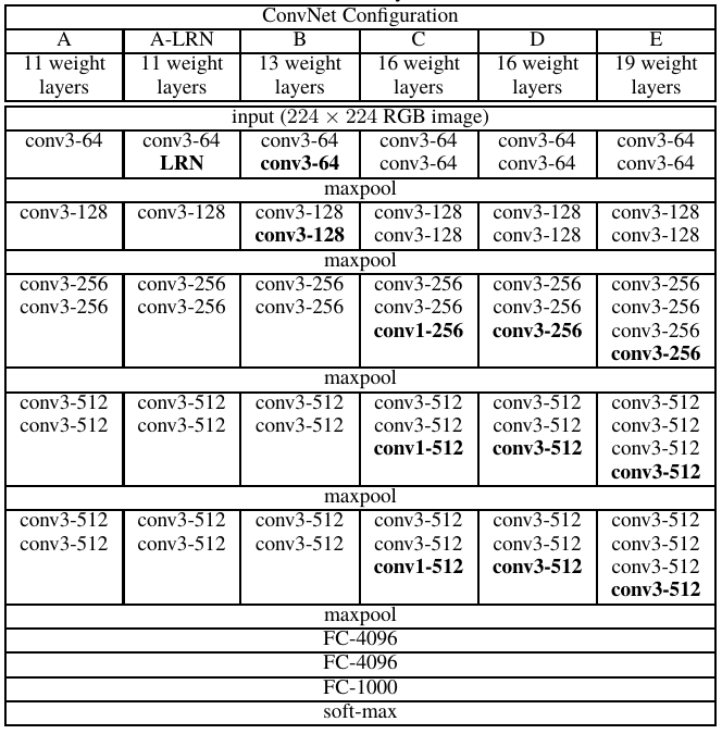 VGGNet模型结构